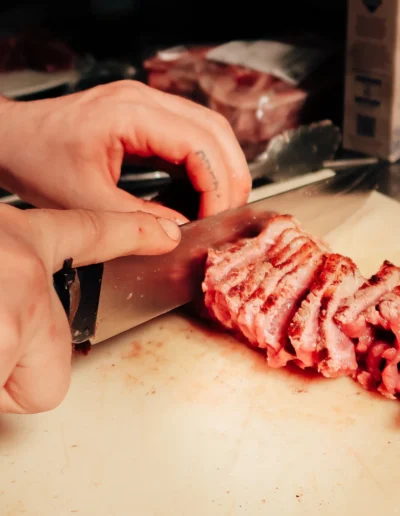 Scegliamo solo tagli pregiati come Scottona, Picanha e Ribeye, frollati naturalmente per esaltarne sapore e consistenza. Ogni taglio è lavorato con cura, garantendo morbidezza e profumo inconfondibili.
